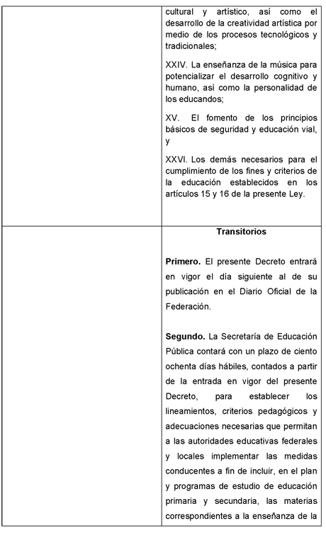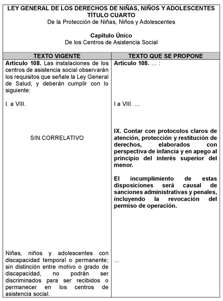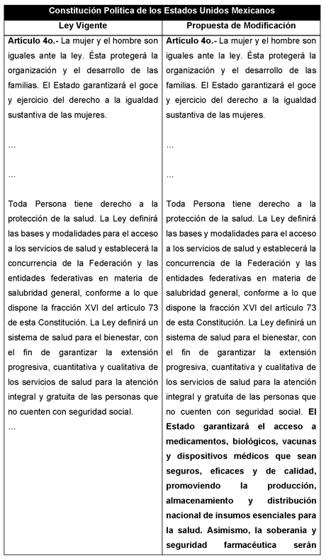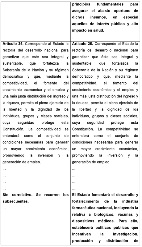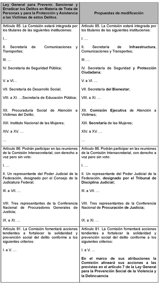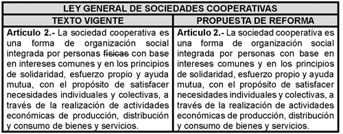 Por ello a continuación se muestra un cuadro comparativo de lo que se busca reformar: