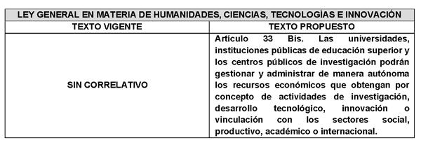 La adición de un artículo 33 Bis a la Ley General en Materia de Humanidades, Ciencias, Tecnologías e Innovación (LGMHCTI) responde a la necesidad urgente de dotar de certidumbre jurídica y operativa a las instituciones públicas de educación superior y centros de investigación para que puedan gestionar de forma autónoma los recursos que generan a través de sus actividades sustantivas. A continuación, se exponen los principales argumentos que justifican esta reforma: