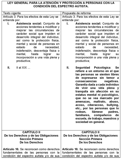 Ante este panorama, se vuelve indispensable fortalecer la Ley General mediante la incorporación de disposiciones que aseguren la protección integral, la inclusión educativa y la atención temprana y especializada, de manera que se garantice el pleno ejercicio de los derechos humanos de las personas con CEA.
