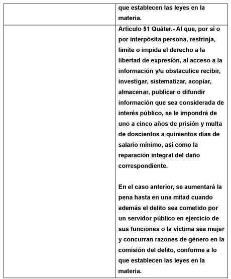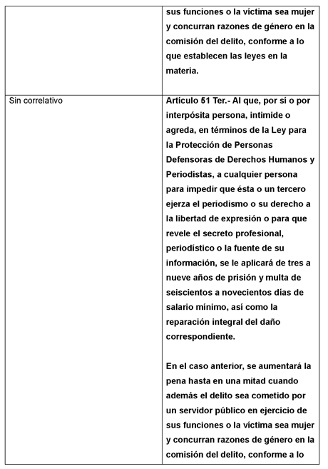 Con el objetivo de exponer con mayor claridad el contenido de esta iniciativa, se muestra el siguiente cuadro comparativo: