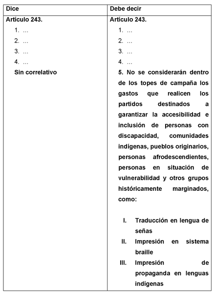 Único. Se adiciona el numeral 5 al artículo 243 de la Ley General de Instituciones y Procedimientos Electorales, para quedar como sigue: