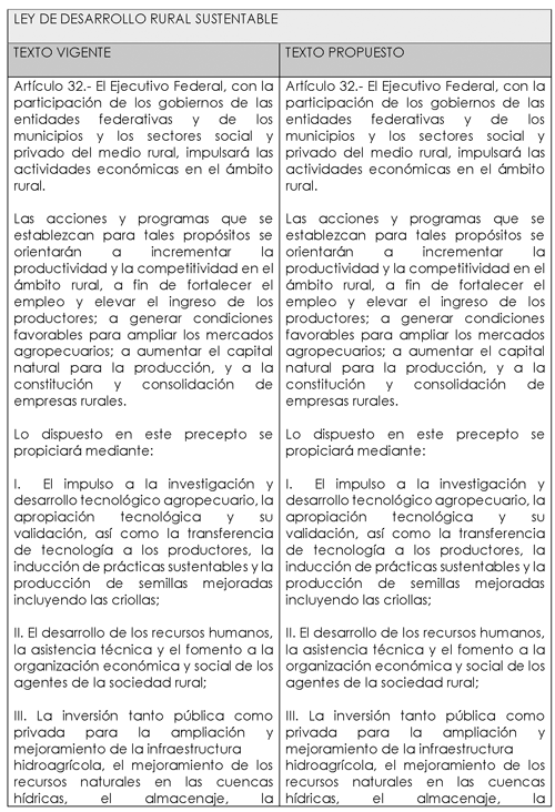 Articulo Único. Se reforma la fracción XIV y se adiciona la fracción XV al artículo 32 de la Ley de Desarrollo Rural Sustentable, para quedar como sigue: