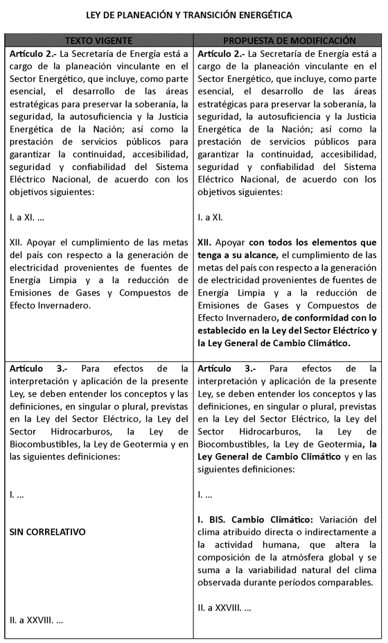 La presente iniciativa tiene por objeto reformar diversas disposiciones de la Ley de Planeación y Transición Energética, estableciendo conceptos que van acorde con los compromisos tomados en la Conferencia de las Naciones Unidas sobre el Cambio Climático (COP26) celebrada en Glasgow, Escocia, en el que los países signantes reafirmaron el compromiso del Pacto de París de limitar el incremento de la temperatura media mundial a 2° C dos grados centígrados por encima del nivel preindustrial y esforzarse para no superar 1.5°C, expresando la alarma y máxima preocupación en relación con las actividades humanas que han provocado un incremento del 1.1°C en las temperaturas hasta la fecha, efectos de los cuales ya se aprecian en todas las regiones; subrayando la urgencia de actuar en esta década crítica, en el que, las emisiones del dióxido de carbono deben reducirse en 45 por ciento con el fin de alcanzar las emisiones netas cero para mediados de siglo.