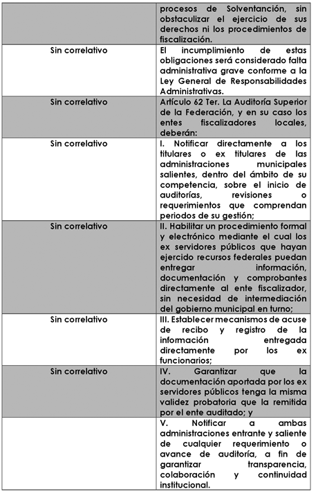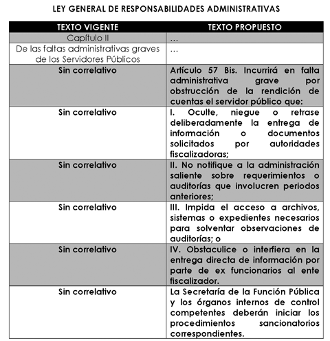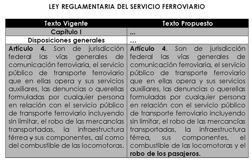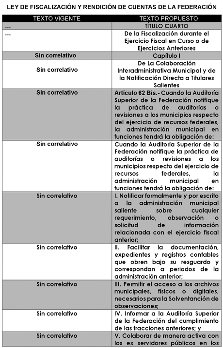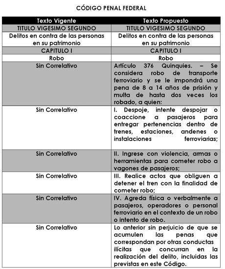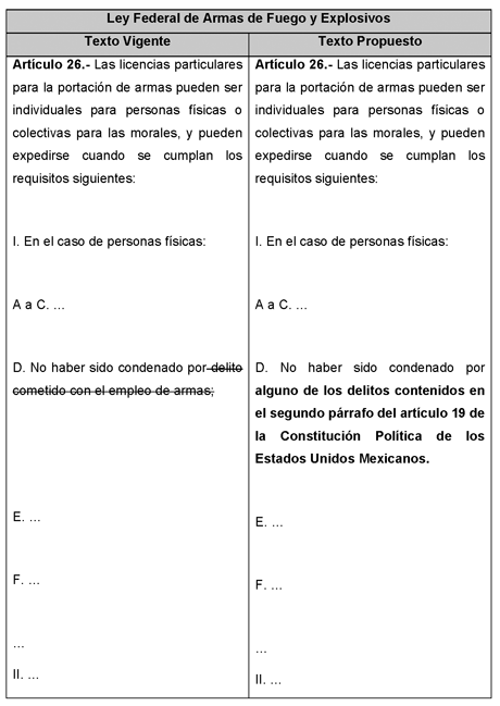 Para mejor referencia de las reformas propuestas, se adjunta el siguiente cuadro comparativo: