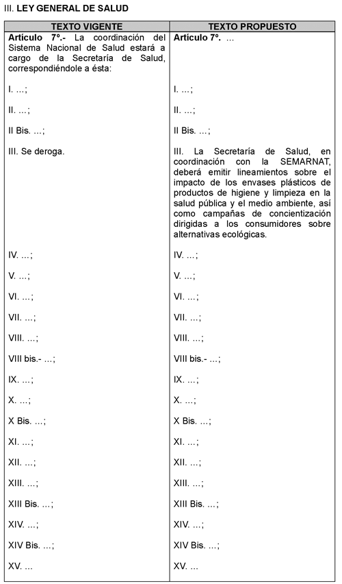 III. La Secretaría de Salud, en coordinación con la Semarnat, deberá emitir lineamientos sobre el impacto de los envases plásticos de productos de higiene y limpieza en la salud pública y el medio ambiente, así como campañas de concientización dirigidas a los consumidores sobre alternativas ecológicas.