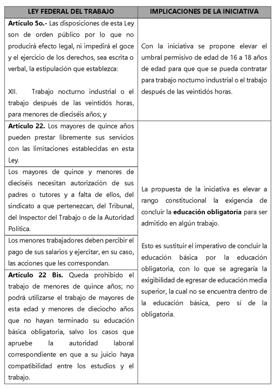 Cabe precisar que la Ley Federal del Trabajo establece, al menos, las siguientes disposiciones que se verían impactadas con esta reforma en los términos que se detallan en el siguiente recuadro: