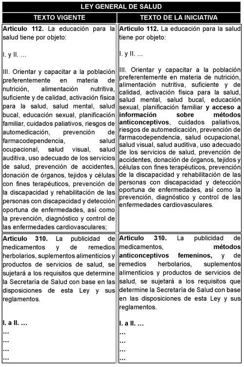 2. Modificar el artículo 310 de la Ley General de Salud, para permitir la publicidad al público general sobre métodos anticonceptivos femeninos, tratándolos como una categoría específica que, si bien requiere receta, necesita de difusión masiva para empoderar la decisión de las mujeres.