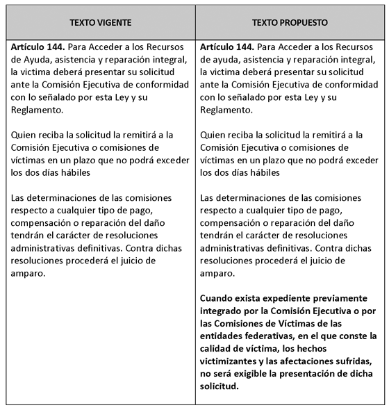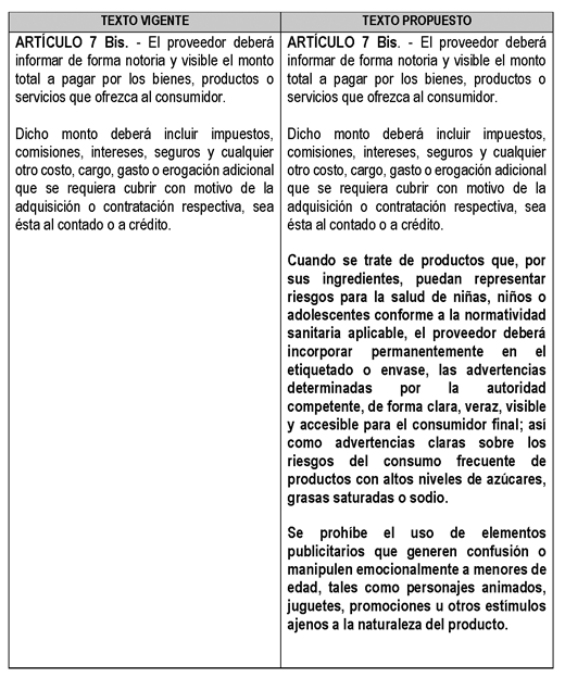Para mayor ilustración, se presenta el siguiente cuadro comparativo entre el texto vigente del ordenamiento a modificar y la propuesta de reforma y adiciones contenidas en la presente iniciativa: