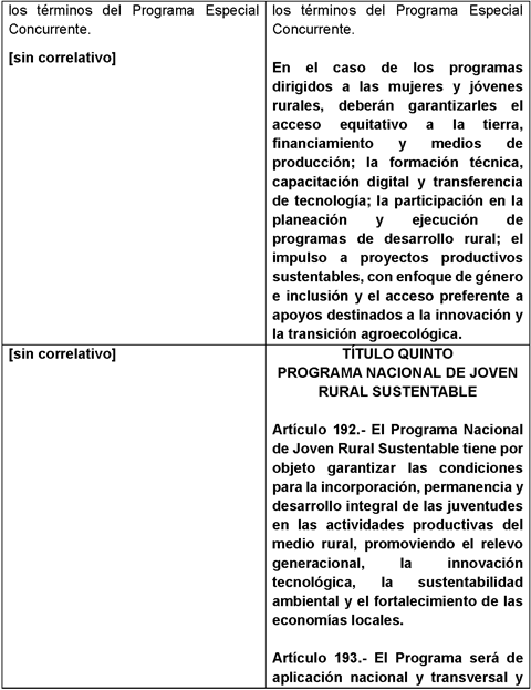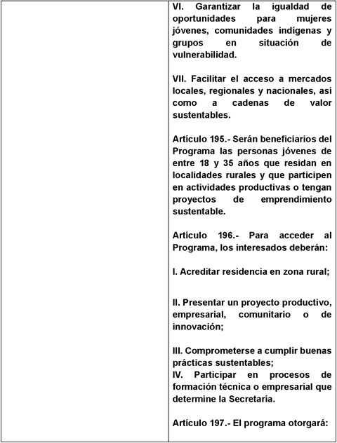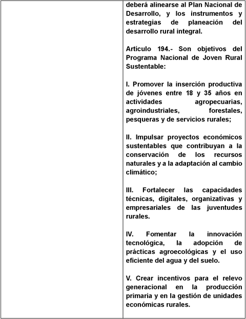 Artículo 194. Son objetivos del Programa Nacional de Joven Rural Sustentable: