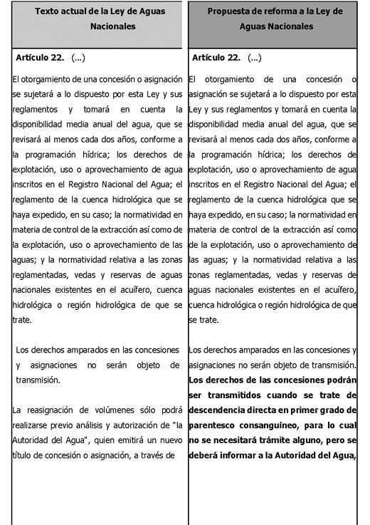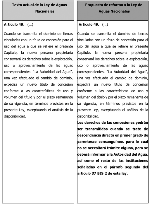 Los derechos de las concesiones podrán ser transmitidos cuando se trate de descendencia directa en primer grado de parentesco consanguíneo, para lo cual no se necesitará trámite alguno, pero se deberá informar a la Autoridad del Agua, así como el resto de las instituciones señaladas en el párrafo segundo del artículo 37 Bis 2 de esta ley.