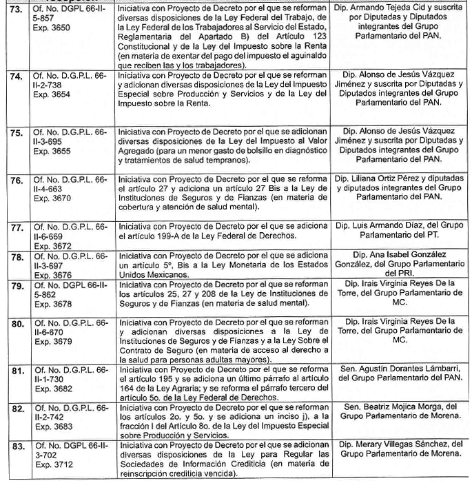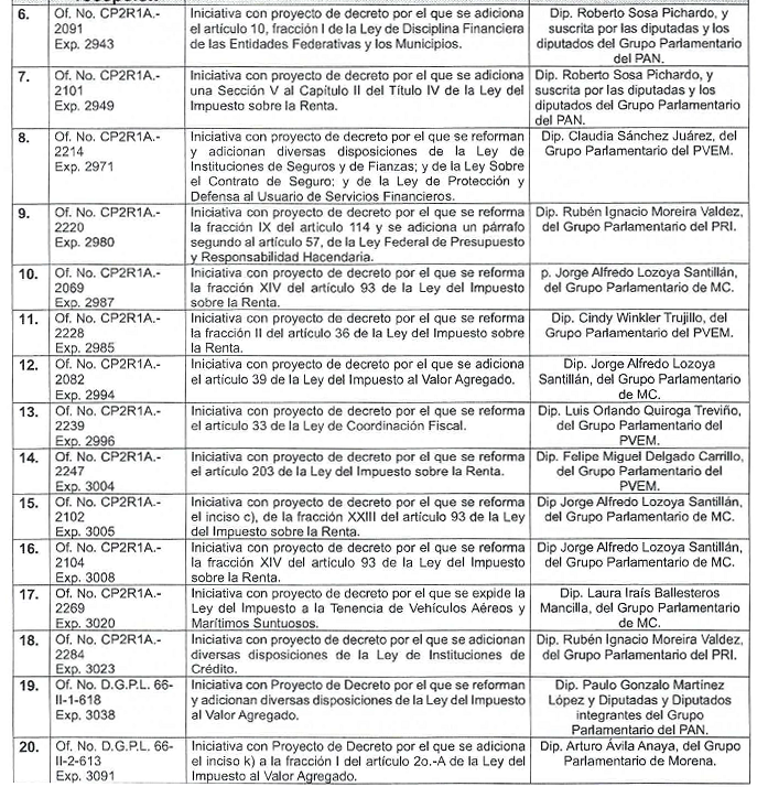 8. Lectura, discusión y, en su caso, aprobación de las opiniones relativas a las iniciativas con proyecto de decreto que se enlistan a continuación:
