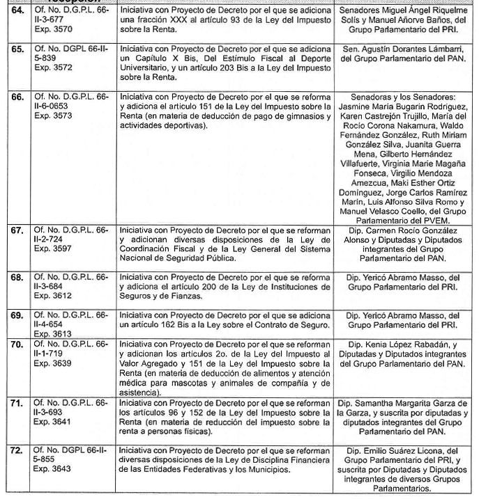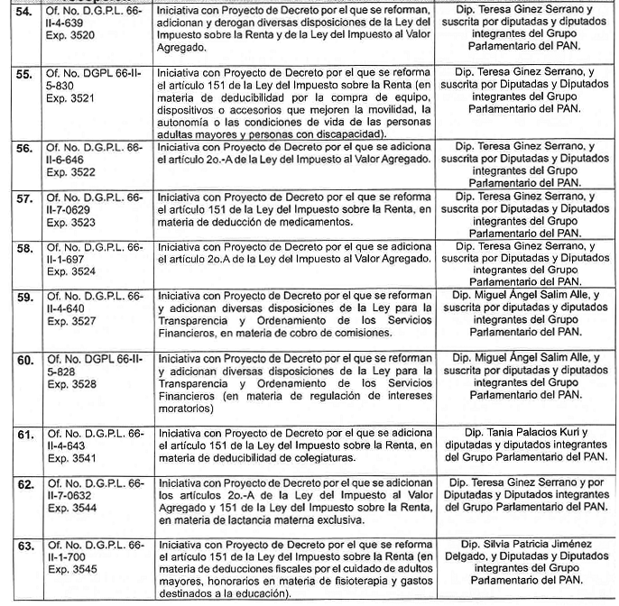 Diputados: Víctor Manuel Pérez Díaz, Manuel de Jesús Baldenebro Arredondo, Francisco Javier Borrego Adame, Víctor Hugo Lobo Román, Adriana Belinda Quiroz Gallegos, Blanca Leticia Gutiérrez Garza, Dennise Guzmán González, Emilio Manzanilla Téllez, Andrés Mauricio Cantú Ramírez, Tecutli José Guadalupe Gómez Villalobos.
