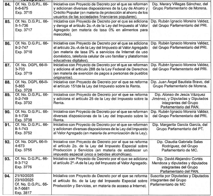 Gaceta Parlamentaria, año XXVIII, número 6910, lunes 3 de noviembre de 2025