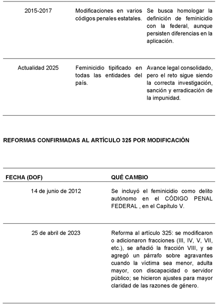 El feminicidio se tipificó a escala federal en México en 2012, cuando se reformó el Código Penal Federal para reconocerlo como un delito distinto del homicidio.