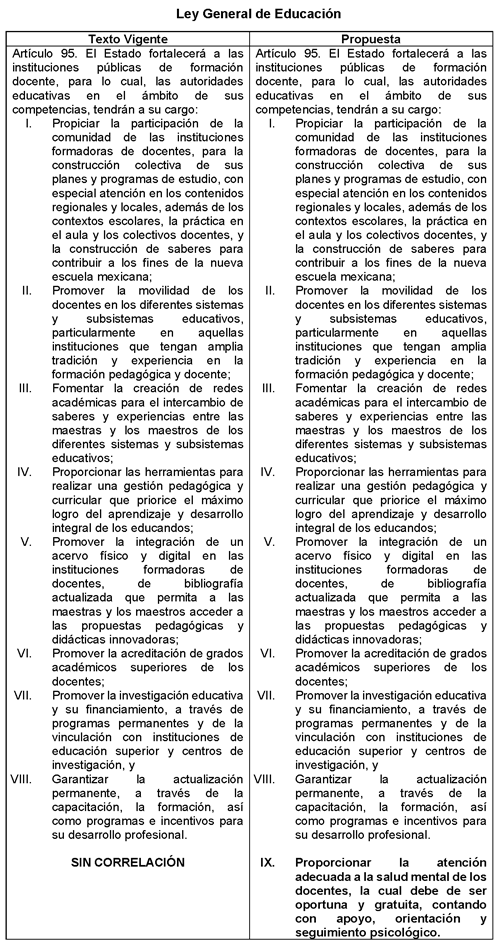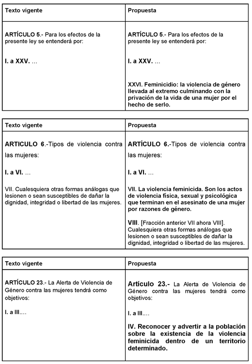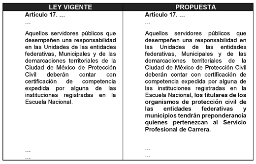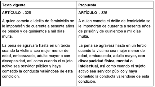 Por lo anterior, se proponen las siguientes modificaciones presentadas a continuación en la siguiente tabla para su mejor comprensión:
