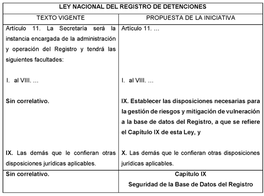 2 IV. La Ley Nacional del Registro de Detenciones incorporará, al menos, las siguientes previsiones: