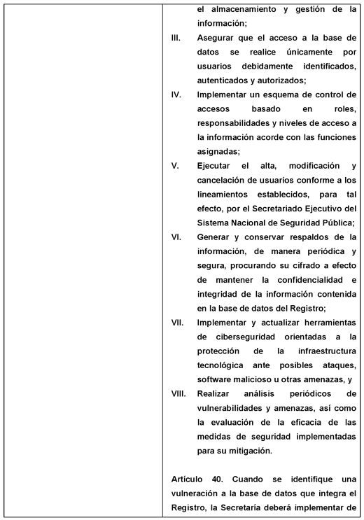 Segundo. En un plazo no mayor a noventa días contados a partir de la entrada en vigor del presente Decreto, la Secretaría deberá emitir el Protocolo para la gestión de riesgos y vulneraciones de la base de datos del Registro Nacional de Detenciones, y realizar las adecuaciones necesarias a las disposiciones aplicables.