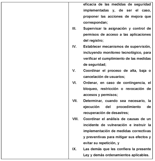 6. Las atribuciones de los servidores públicos que desempeñen funciones en el registro y sus responsabilidades en la recepción, administración y seguridad de la información, y