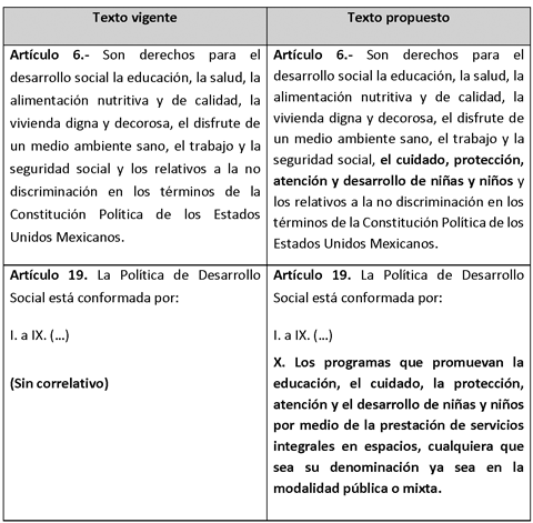 Decreto por el que se reforman y adicionan los artículos 6 y 19 de la Ley General de Desarrollo Social, en materia de cuidado infantil