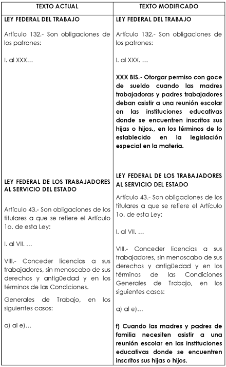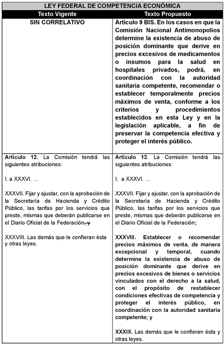 VII. Por lo anterior, para mayor claridad a la propuesta, se incluye un cuadro comparativo de la misma: