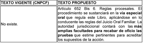 La siguiente tabla detalla la reforma específica que se propone al Código Nacional de Procedimientos Civiles y Familiares 1:
