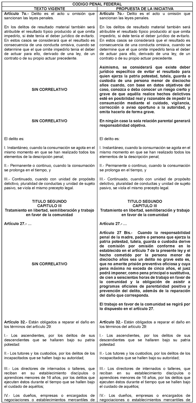a) Constitucionalidad y convencionalidad. La iniciativa desarrolla la cláusula de interés superior de la niñez (artículo 4 CPEUM), armoniza con el bloque de derechos humanos y respeta el principio de proporcionalidad. La comisión por omisión se encuentra en el texto expreso del Artículo 7 CPF, por lo que la reforma no crea un nuevo título de imputación, sino que delimita su aplicación en casos de garantía parental.
