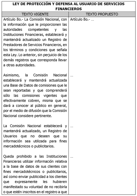 Artículo Único . Se adiciona un párrafo sexto al artículo 8, recorriendo los demás en su orden subsecuente, de la Ley de Protección y Defensa al Usuario de Servicios Financieros, para quedar como sigue: