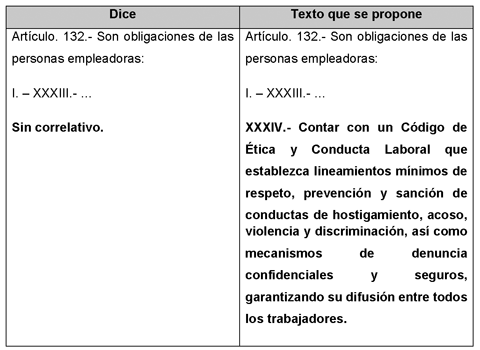 Decreto por el que se adiciona la fracción XXXIV al artículo 132 de la Ley Federal del Trabajo, para garantizar la ética y la conducta laboral.