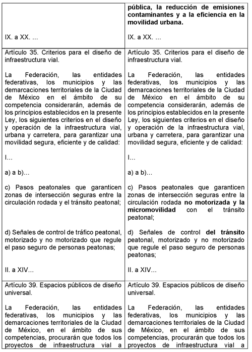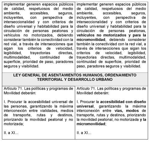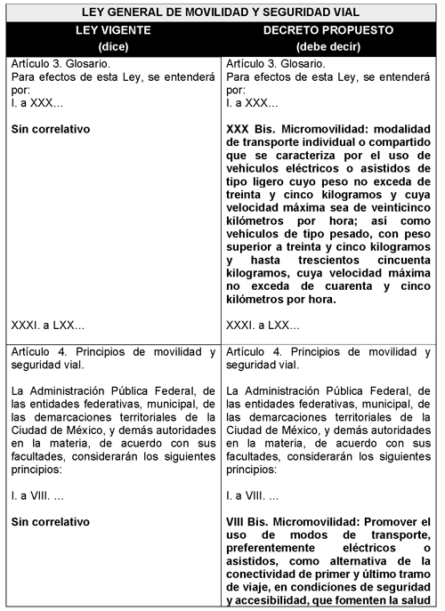 Decreto por el que se adicionan la fracción XXX Bis al artículo 3 y una fracción VIII Bis al artículo 4, y se reforman los incisos c) y d) de la fracción I del artículo 35 y el artículo 39 de la Ley General de Movilidad y Seguridad Vial, así como la fracción I del artículo 71 de la Ley General de Asentamientos Humanos, Ordenamiento Territorial y Desarrollo Urbano, en materia de micromovilidad