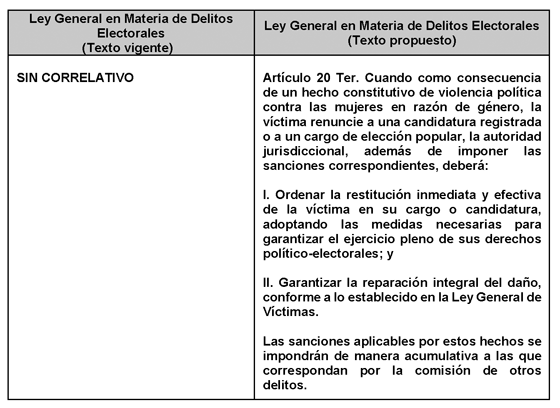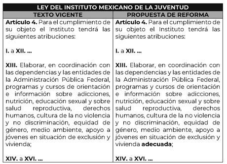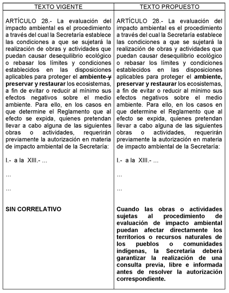 Con el objeto de exponer con mayor claridad el contenido de esta iniciativa, se muestra el siguiente cuadro comparativo, mostrando en la segunda columna la reforma que se propone: