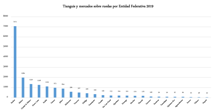 Esto, además de influir en la falta de acceso a derechos sociales elementales, también dificulta la movilidad social de sus integrantes, ya que la transmisión intergeneracional de puestos y redes comerciales asegura continuidad pero también reproduce condiciones económicas precarias sin posibilidad de mejorar. Dicha problemática debe observarse a la luz de la dimensión social de los tianguis; de acuerdo con el INEGI16 , los tianguis se distribuyen de la siguiente forma en todo el país: