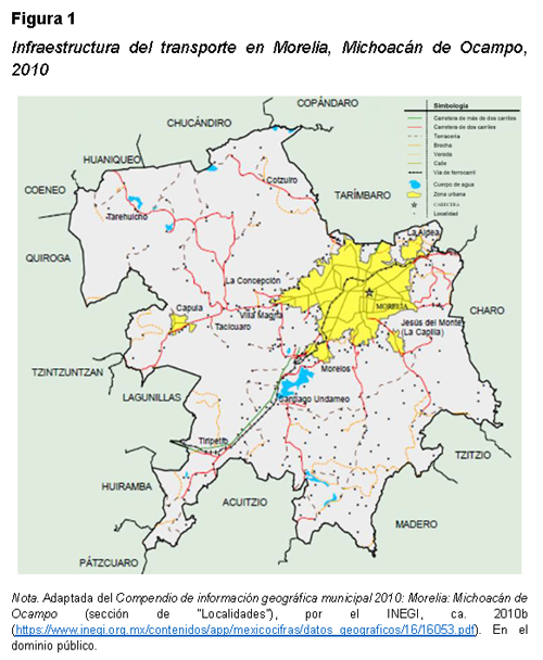 Para la integración y sinergia del sector económico de la capital del Estado de Michoacán, resulta necesario destacar la participación del transporte de carga a través de una vía de comunicación ferroviaria que prácticamente corta por la mitad, la zona urbana de Morelia (véase la Figura 1). La cual fue construida en 1886, debiendo destacar que en esa época la Ciudad presentaba una configuración muy diferente.