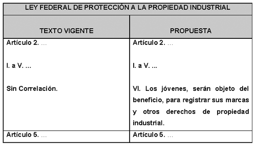 Aunado a esto, es importante apoyar a la juventud mexicana y no ponerles límites a su creatividad, emprendimiento y trámites de registro de marcas. Por ello, para ayudar a la juventud, es necesario implementar campañas de promoción con bajo costo para personas jóvenes emprendedoras para registrar sus marcas y otros derechos de propiedad industrial, con el propósito de fomentar la innovación, el emprendimiento y el crecimiento económico en México.