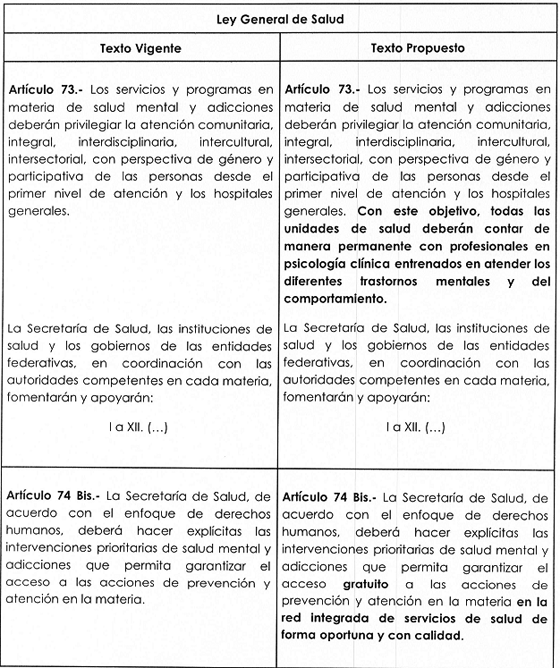 Proyecto de decreto por el que se reforman el artículo 73 y el 74 Bis de la Ley General de Salud, en materia de salud mental