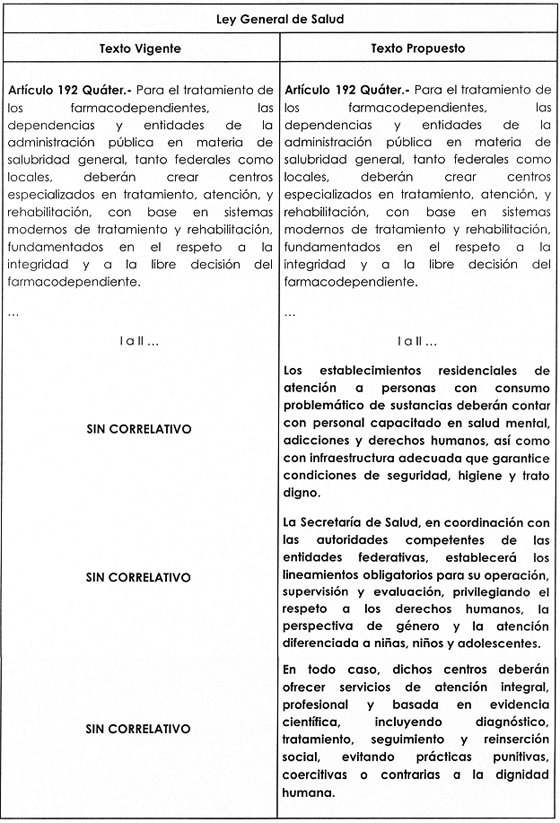 Artículo Único. Se reforma el artículo 192 quáter de la Ley General de Salud, para quedar como sigue: