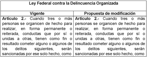 En cuanto a la Ley Federal contra la Delincuencia Organizada: