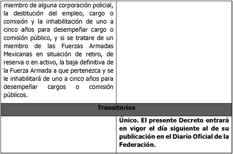 Único. Se reforma el párrafo segundo del artículo 60 de la Ley General del Sistema Nacional de Seguridad Pública, para quedar como sigue: