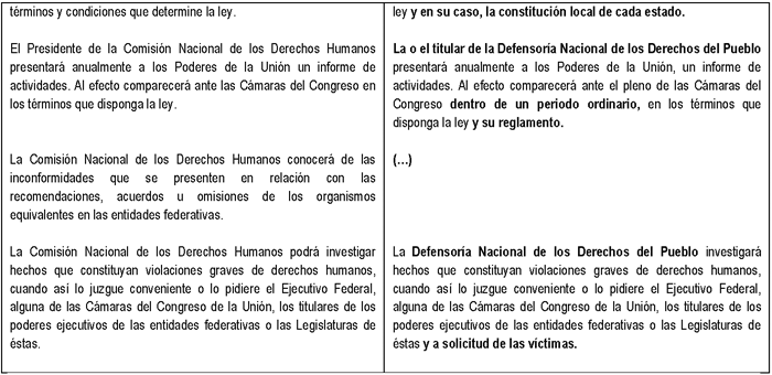 Con esta iniciativa se pretende ampliar los alcances de la misión institucional del nuevo organismo público nacional, en cumplimiento con la aprobada reforma constitucional de 2011, con la cual se estableció la obligación del Estado mexicano y todas sus autoridades de proteger los derechos humanos e incorporar entre sus funciones acciones preventivas, que también permitan incidir en la estrategia de seguridad y paz que es imperante en el país mediante mecanismos de defensa, protección, observancia, investigación, estudio, educación y divulgación de los derechos humanos.