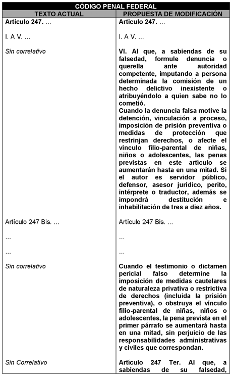 Único. Se adicionan la fracción VI el artículo 247 y un último párrafo al artículo 247 Bis, se reforma el artículo 248 Bis y se adiciona el artículo 247 Ter al Código Penal Federal, para quedar como sigue: