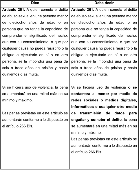 La legislación penal debe mantenerse actualizada con las formas actuales de comisión del delito. El contacto a través de redes sociales permite al agresor ocultar su identidad, fingir ser un menor de edad o manipular emocionalmente a la víctima con mayor eficacia.