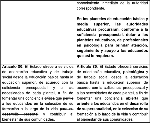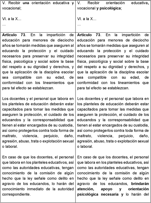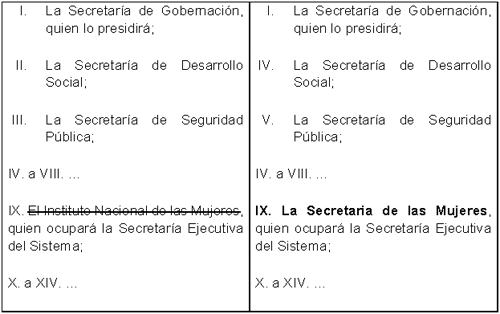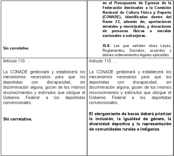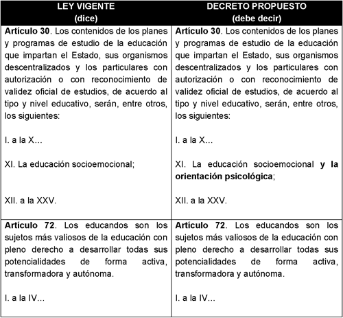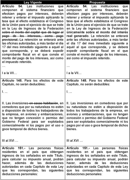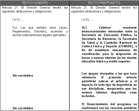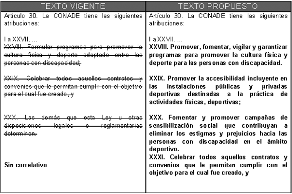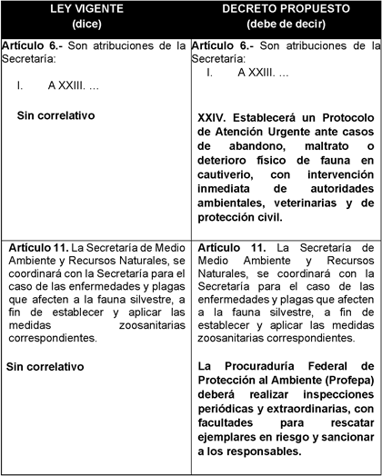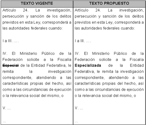 Para una mejor comprensión de las modificaciones propuestas se presenta el siguiente cuadro comparativo: