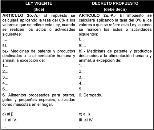Y en la publicación de fecha 11 de diciembre de 2013, realizada en el Diario Oficial de la Federación, se incluyó por primera vez la excepción a la tasa cero sobre los alimentos procesados para perros, gatos y pequeñas especies, utilizadas como mascotas en el hogar, materia de esta iniciativa, y así se ha mantenido hasta la fecha.
