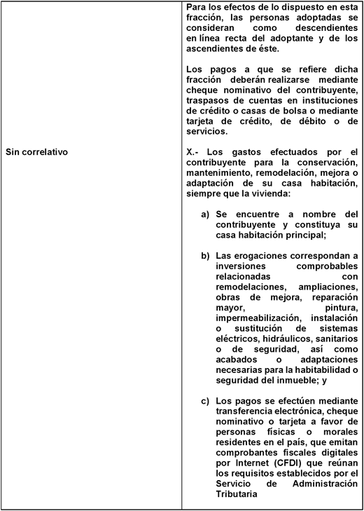En el caso de las personas que cuenten con créditos para mejoramiento y/o rehabilitación de vivienda por alguna institución de seguridad social podrán deducir los intereses que dichos créditos generen.