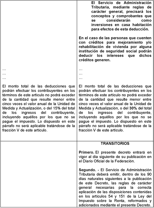 Único. Se reforman el primer párrafo del artículo 54, la fracción II del artículo 148, y la fracción I y el último párrafo del artículo 151; y se adicionan las fracciones IX y X al artículo 151 de la Ley del Impuesto sobre la Renta, para quedar como sigue: