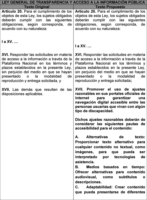 Decreto por el se reforman y adicionan diversas disposiciones del artículo 20 de la Ley General de Transparencia y Acceso a la información, en materia de fomento al uso de ajustes razonables para mejorar la accesibilidad a información a personas con discapacidad