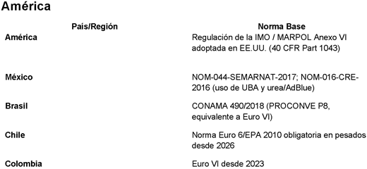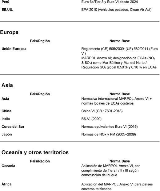 De igual forma, la NOM-044-SEMARNAT-2017 aplica específicamente a vehículos pesados nuevos equipados con motores diésel y establece límites estrictos para emisiones de óxidos de nitrógeno, partículas finas, monóxido de carbono y otros contaminantes, con parámetros equivalentes a los estándares Euro VI y EPA 2010. Cabe señalar que esta última norma tuvo una actualización en enero de 2025, cuando se eliminó la prórroga para la importación y producción de vehículos pesados con tecnologías Euro V y EPA 07, obligando al uso de tecnologías más limpias para cumplir con estándares ambientales más estrictos y reducir contaminantes.