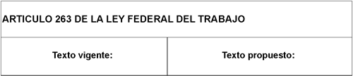 Artículo Segundo. Se reforma la fracción II del artículo 263 de la Ley Federal del Trabajo, para quedar como sigue: