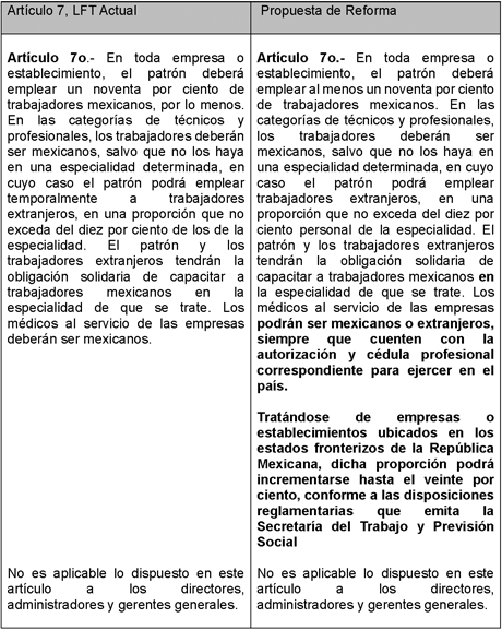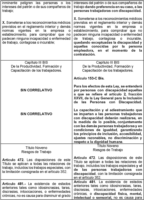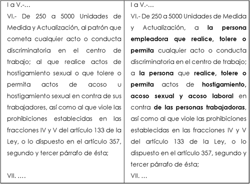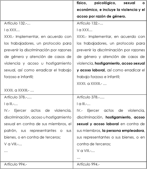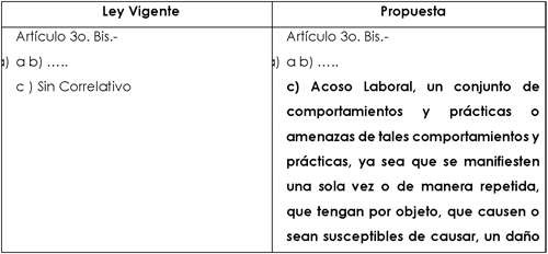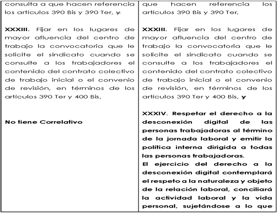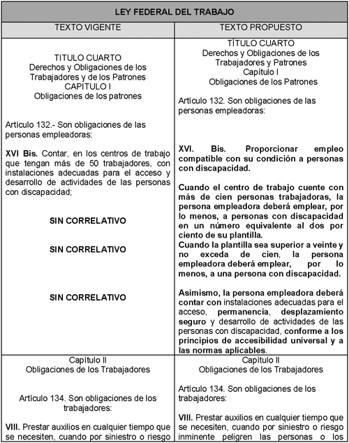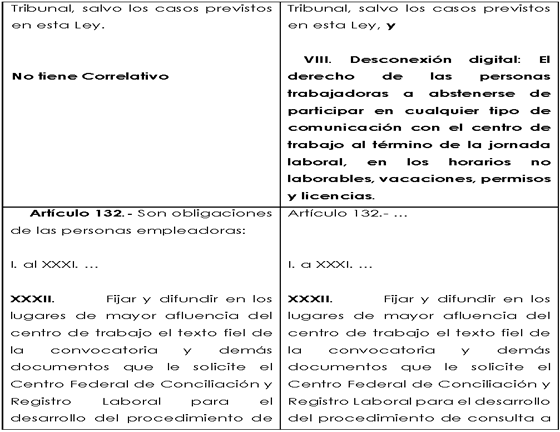 A continuación, se muestra un cuadro comparativo que ilustra el planteamiento de la propuesta de modificación mencionada en la presente Exposición de Motivos, en perspectiva con la Ley Federal de Trabajo vigente: