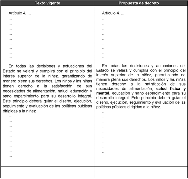 Es así, como se proponen las siguientes modificaciones presentadas a continuación en la siguiente tabla para su mejor comprensión:
