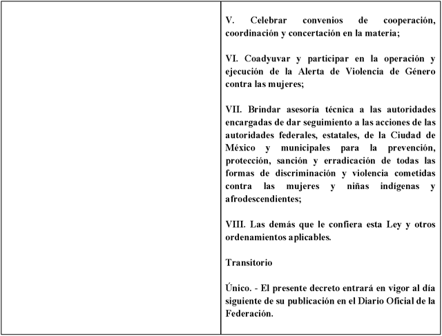 Único . El presente decreto entrará en vigor el día siguiente al de su publicación en el Diario Oficial de la Federación.